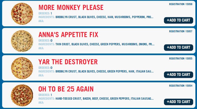 Sure, lots of food delivery services allow you to order food via text or IM, but Domino’s gets the social aspect spot-on. Users go to the site, pick out their crust, amount of sauce, toppings, and so on… and then their personalized pie is added to a huge catalog of existing user-created “recipes.” The pizzas are named by the users, creating a fun and cheeky list ranging from the “Get’er Done” (perfectly paired with PBR) to the “Rick and Ronda Half Nelson” (clearly built upon a marriage of a pepperoni lover and a veggie) to the “This Little Piggy” (fairly self-explanatory).