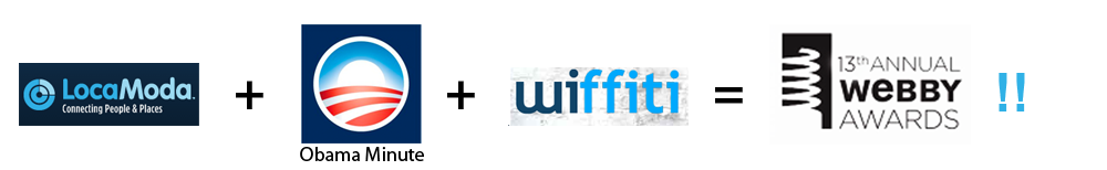 Our Obama Minute Wiffiti was selected as an Official Honoree for the Rich Media: Non-Profit/Educational category at The 13th Annual Webby Awards. We were selected as the top 15% out of nearly 10,000 entries from all 50 states and over 60 countries. Good job, huh! :)
