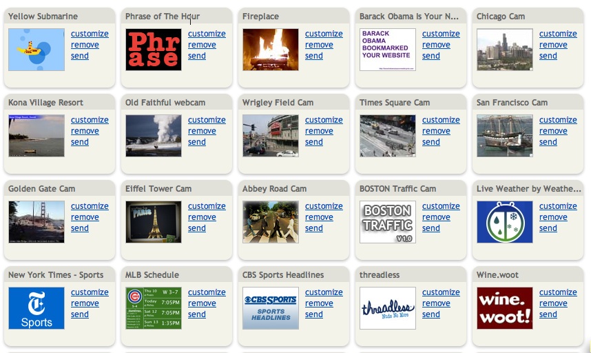 Now there’s a reason to have a persistent extra screen! Whereas most of the other content they had been serving was already present in my iGoogle (and could be considered fairly redundant with the info stream I was getting on my own machine), here was a perfect display of the ambient web done right.