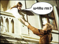 3. The teacher asks students to think about the prologue, and to summarize it in 140 characters by using their cell phones to send a text message to the Wiffiti screen that the teacher previously set up.